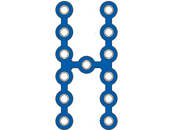 Plaque en H, 2 références, en titane nitruré. Epaisseur: 0.6 mm