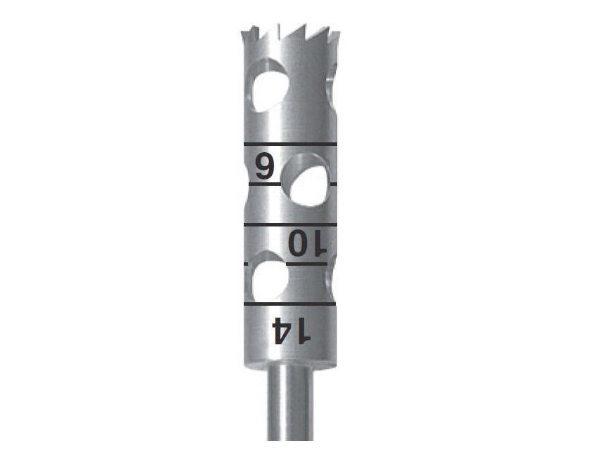 Les marques au laser sont espacées de 2 mm et permettent une visualisation précise de la profondeur de pénétration. Départ de la 1ère marque à 6 mm.